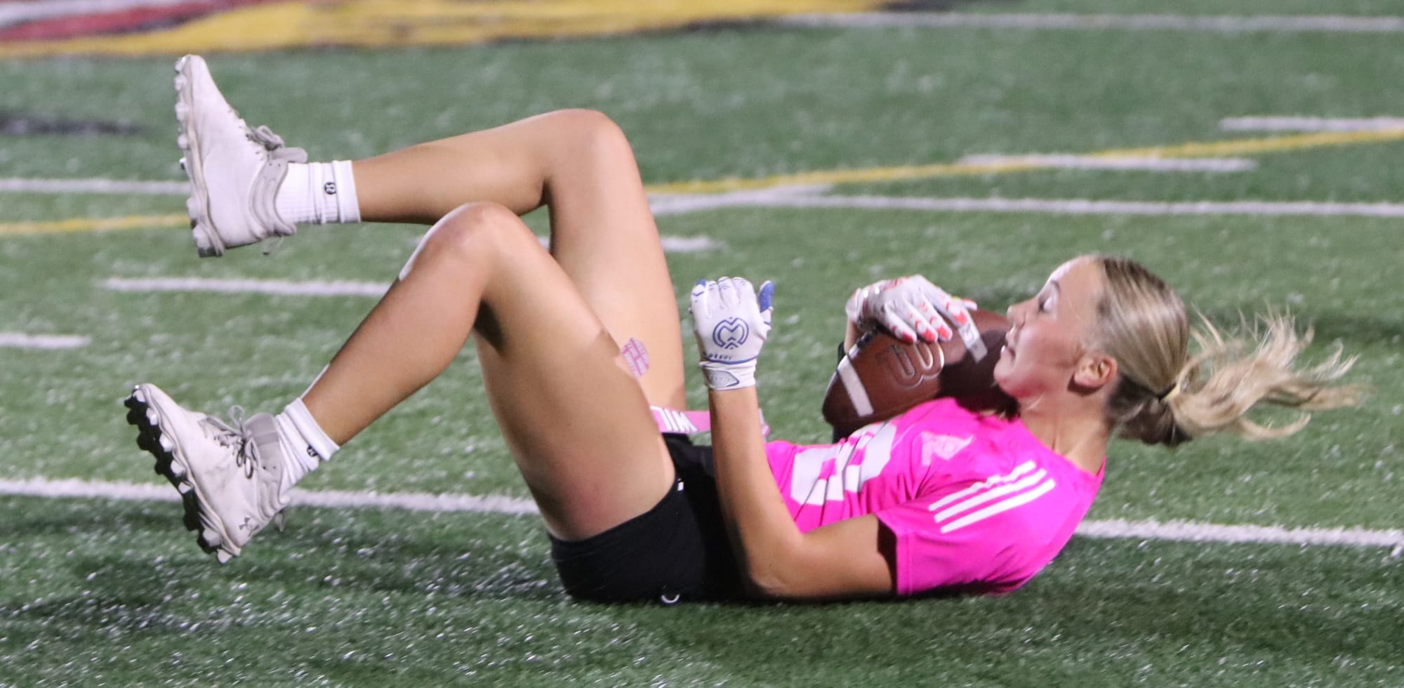 Beaumont sophomore receiver Lillyana Nunez caught 15 passes for 95 yards including a tremendous grab of a Martinez pass in the end zone where Nunez outfought the defender for the ball.