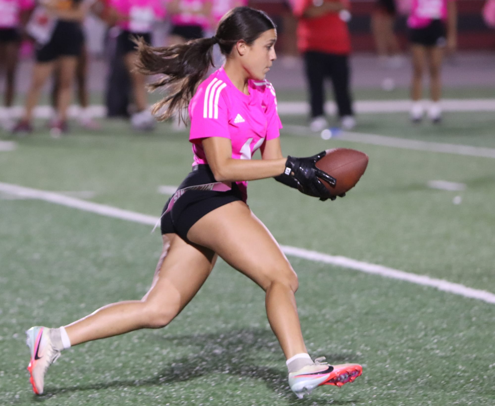 Also for Beaumont, Francheska Dizon caught five passes for 50 yards and Laylene Fontes caught eight passes for 38 yards and also passed for 21 yards.