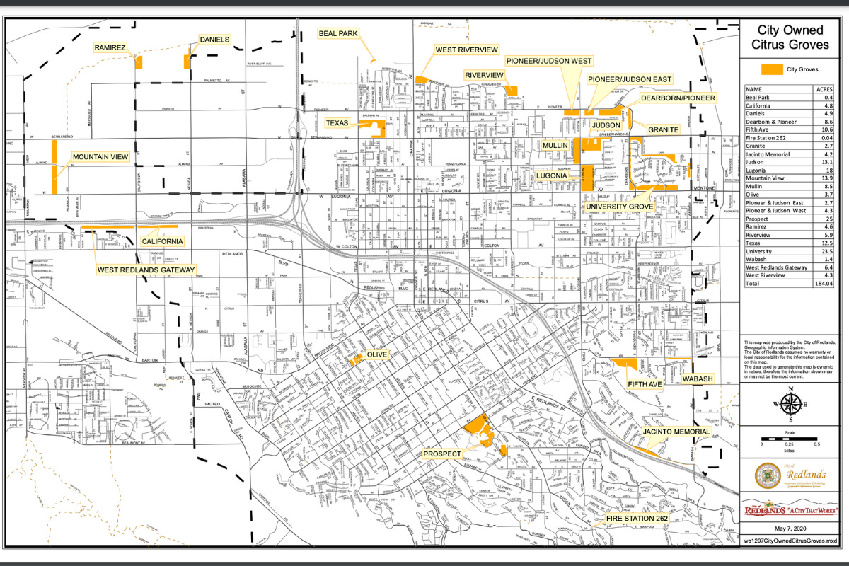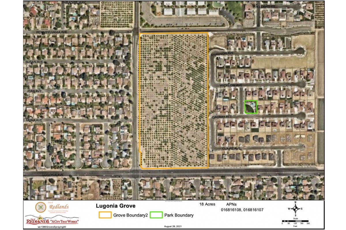 The Redlands Fire Department and Citrus Preservation Committee worked together to identify an acre of the Lugionia Grove, on the corner of Lugonia Ave and Judson Street, as a possible location for a new fire station.