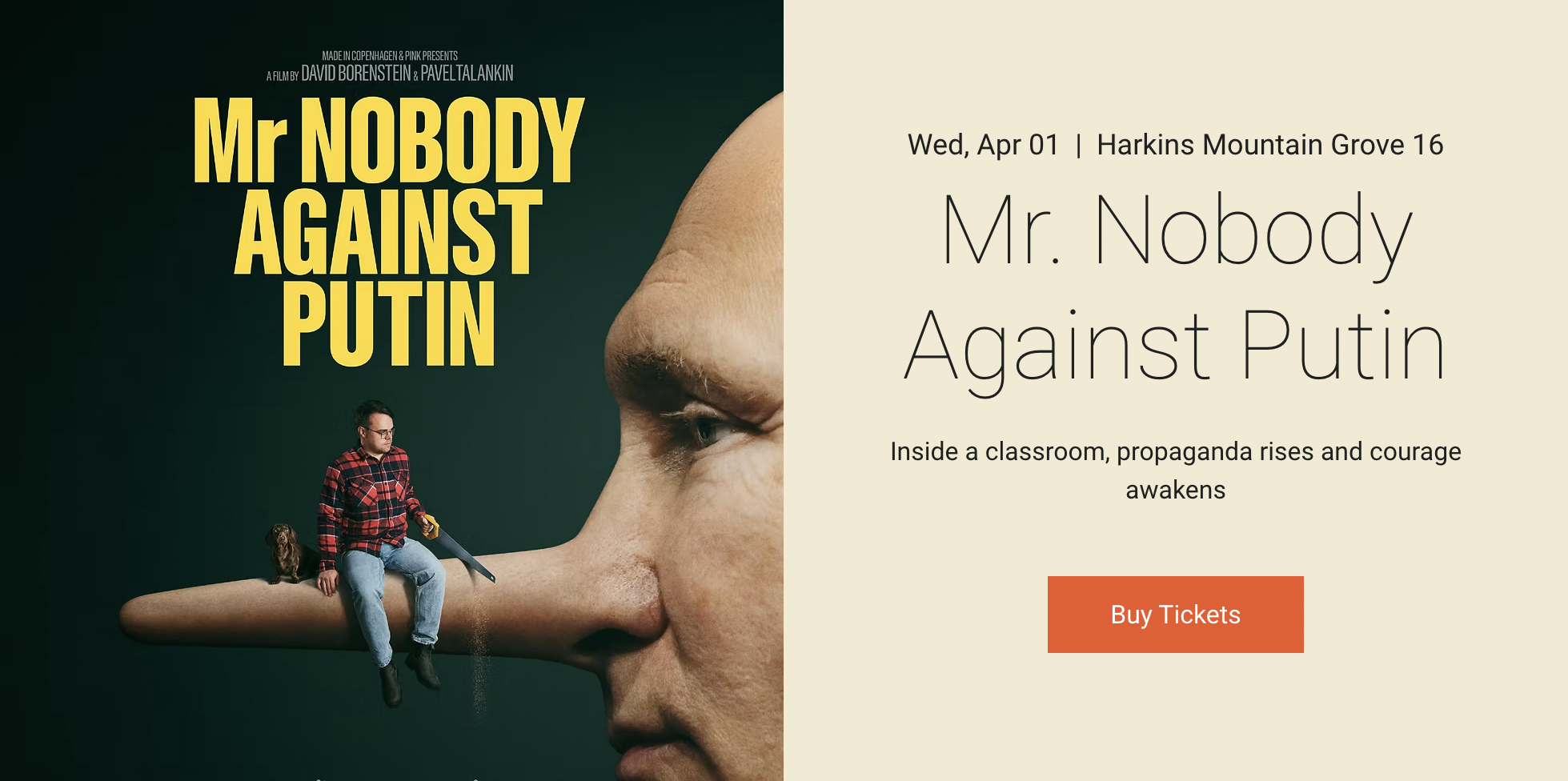 The series opens April 1–2 with Mr. Nobody Against Putin, a documentary directed by David Borenstein and Pavel Talankin. The film follows a Russian school videographer who documents the impact of government propaganda and military recruitment on students after Russia announces plans to invade Ukraine. The film has been nominated for the 2026 Academy Award for Best Documentary Feature.
