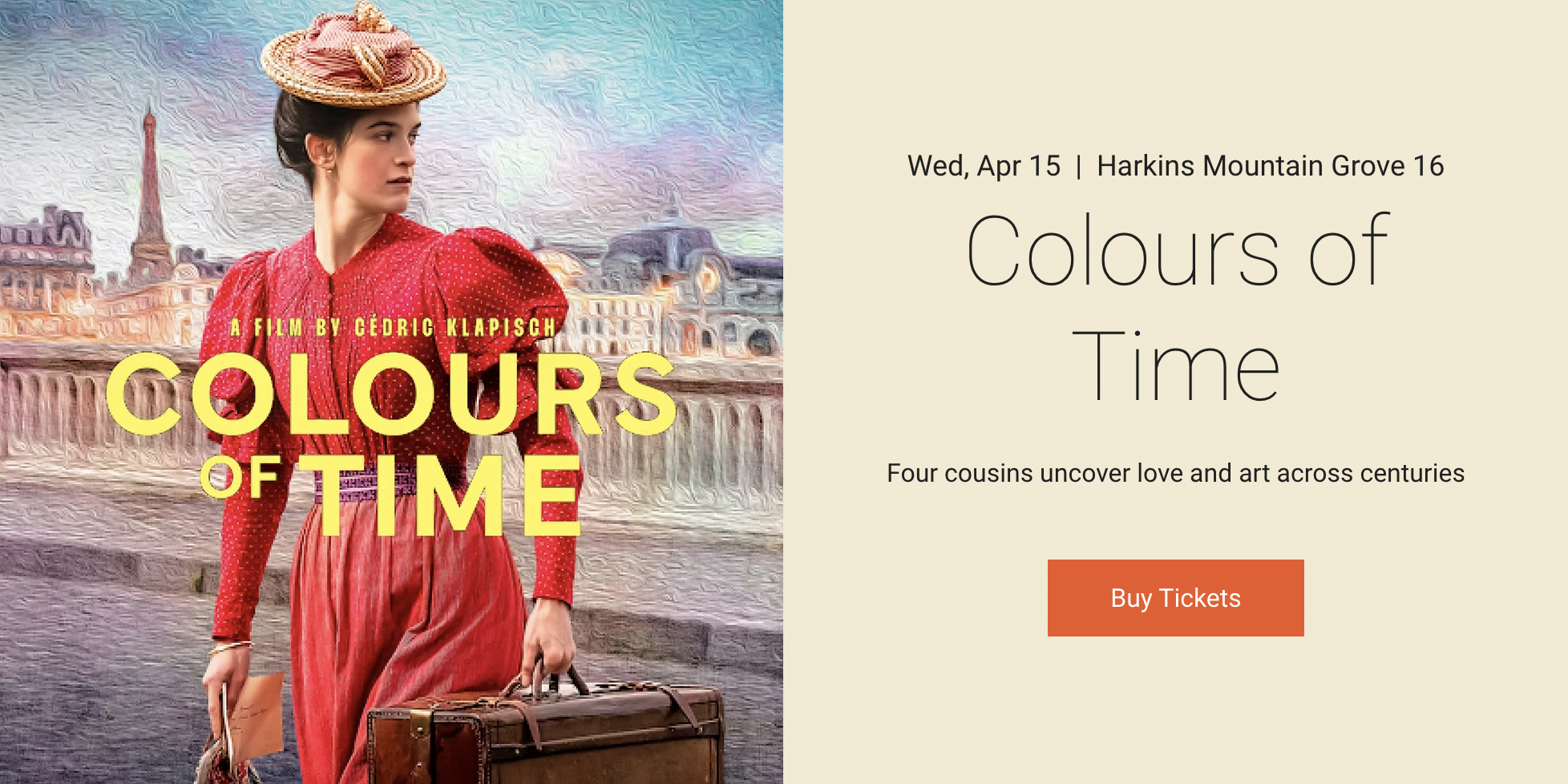 On April 15–16, the series continues with Colours of Time, a French and Belgian film directed by Cédric Klapisch. The story moves between modern-day cousins investigating their family history and a young woman’s journey to Paris in 1895, reflecting the cultural shifts of the turn of the 20th century. The film won the Audience Award at the American French Film Festival.
