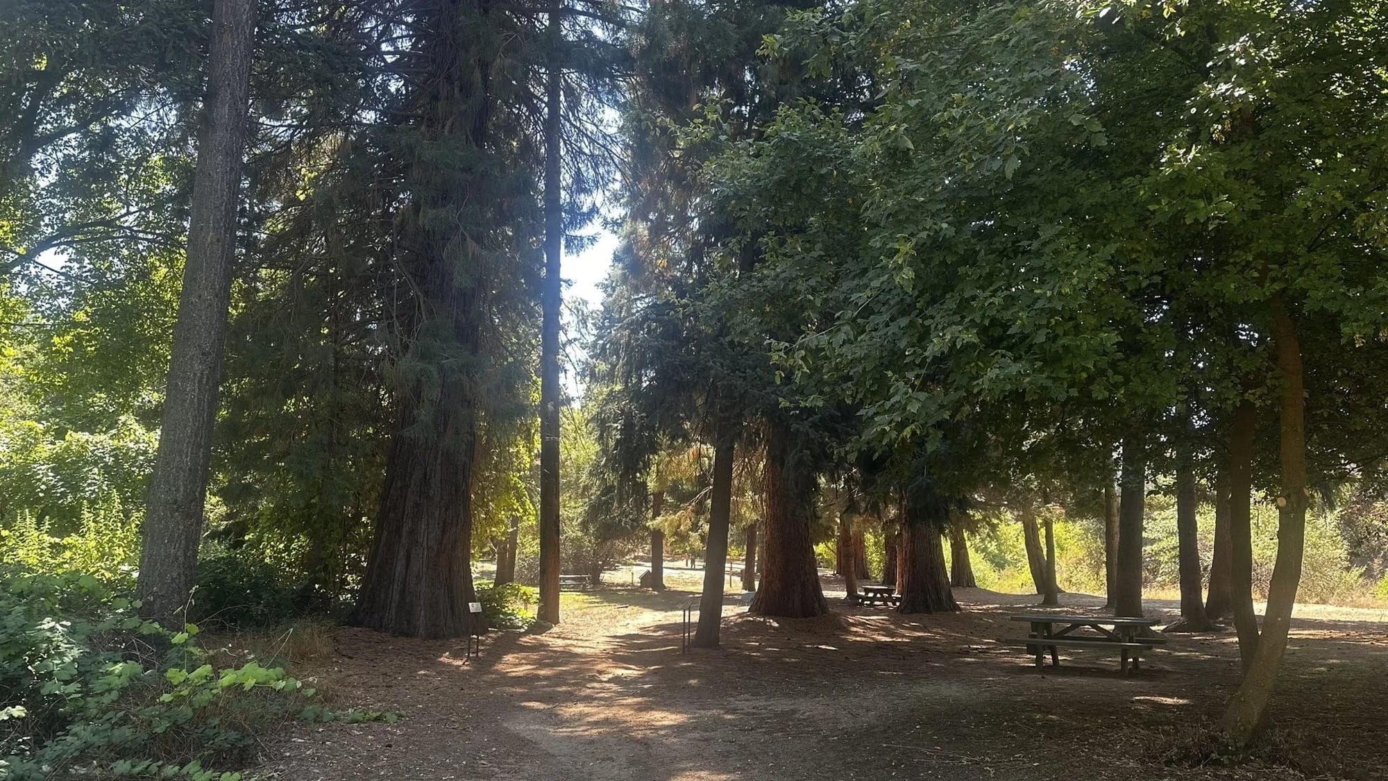 We found another group of picnic tables about three-quarters of the way through under another copse of redwoods and had lunch.