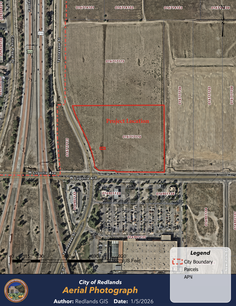 REDLANDS, Calif. (Jan. 21, 2026)— A new shopping center could soon rise on an 8.5-acre vacant site at the northeast corner of Lugonia Avenue and Tennessee Street in Redlands.