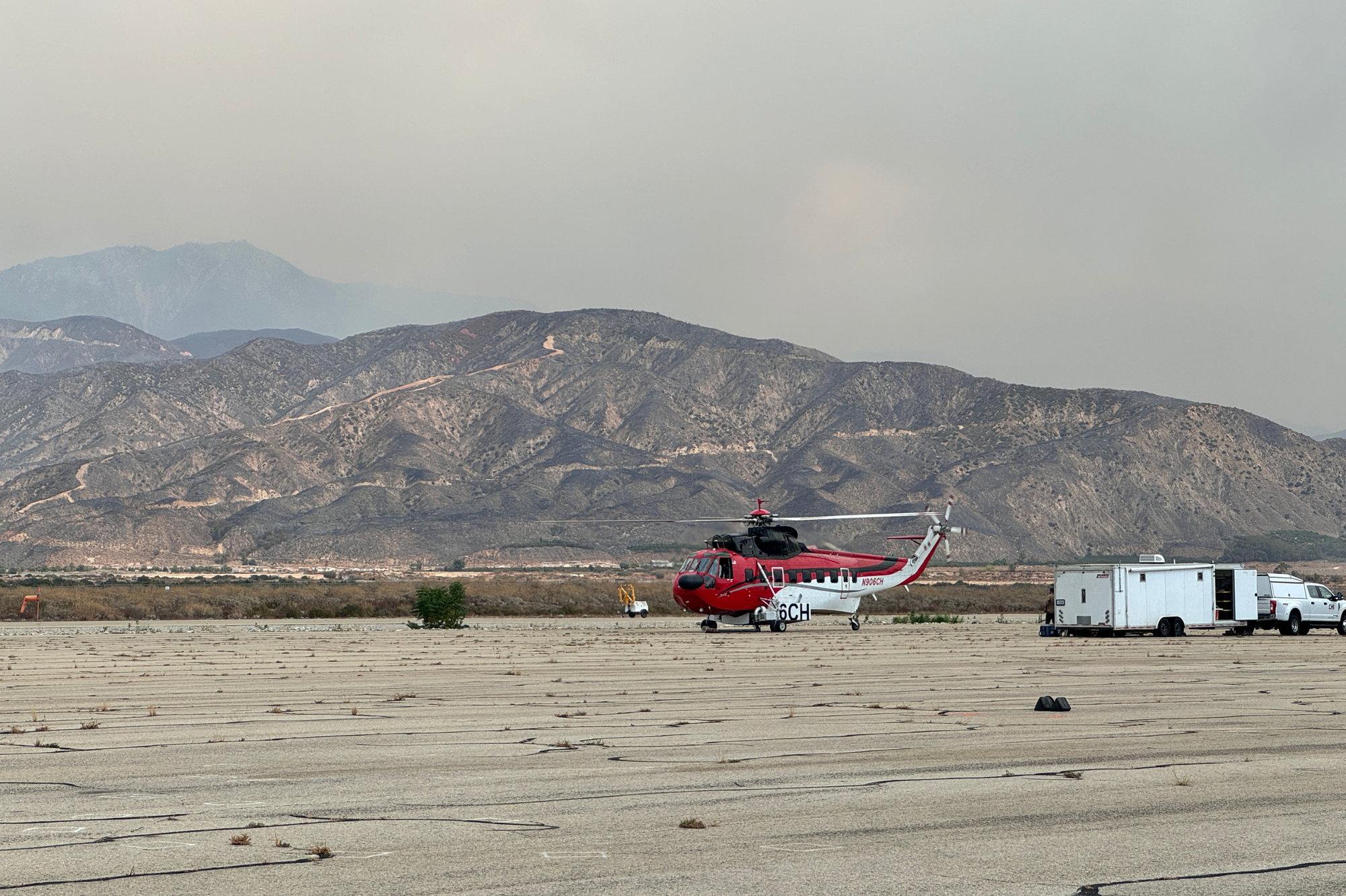 REDLANDS, Calif. — At the base of the San Bernardino Mountains, Redlands Municipal Airport has become a pivotal staging ground in the aerial battle against the Line fire, which has scorched more than 20,500 acres as of Sunday night.