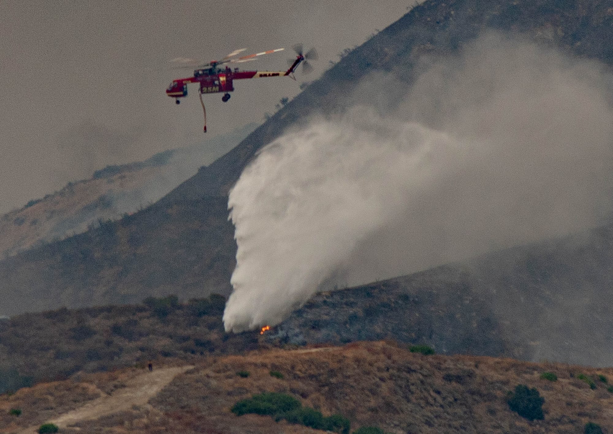 While fixed-wing aircraft drops fire retardant from higher altitudes, helicopters provide more direct water dumps, a crucial part of fighting the flames.