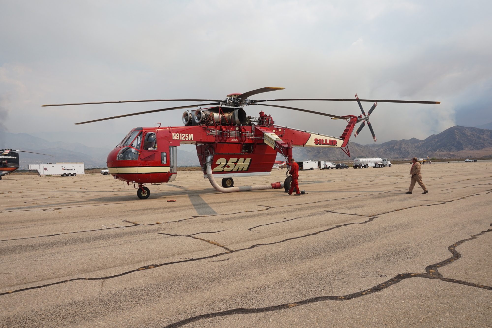 The CH-54A Sikorsky Skycrane, one of only about 55 still flying worldwide, plays a key role. With the ability to carry 2,650 gallons of water, the vintage helicopter can fill its tank in just 45 seconds.