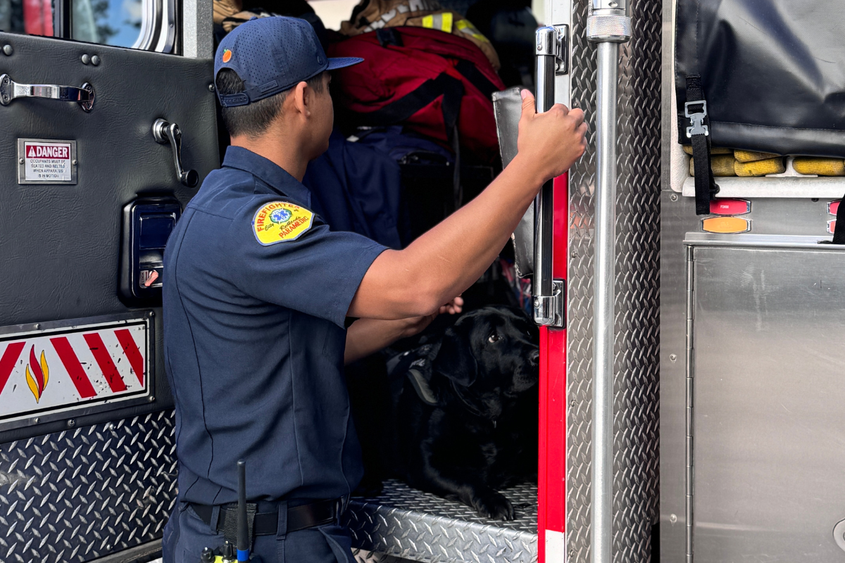 The department chose a shared-handler model intentionally, ensuring that Fae is accessible to as many firefighters as possible. Whitaker said that by stationing her downtown, nearly half of the department’s firefighters interact with her regularly across different shifts.