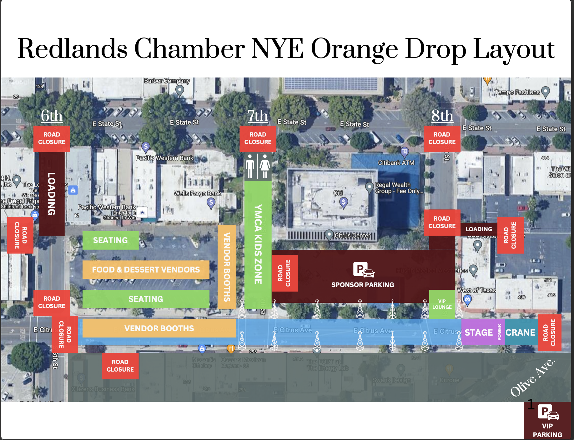 Festivities are scheduled from 6 to 9 p.m. on Citrus Avenue, between Sixth and Eighth streets, culminating with the signature orange drop at 9 p.m. Organizers say the earlier timing allows more of the community to attend and still celebrate midnight in their own ways.