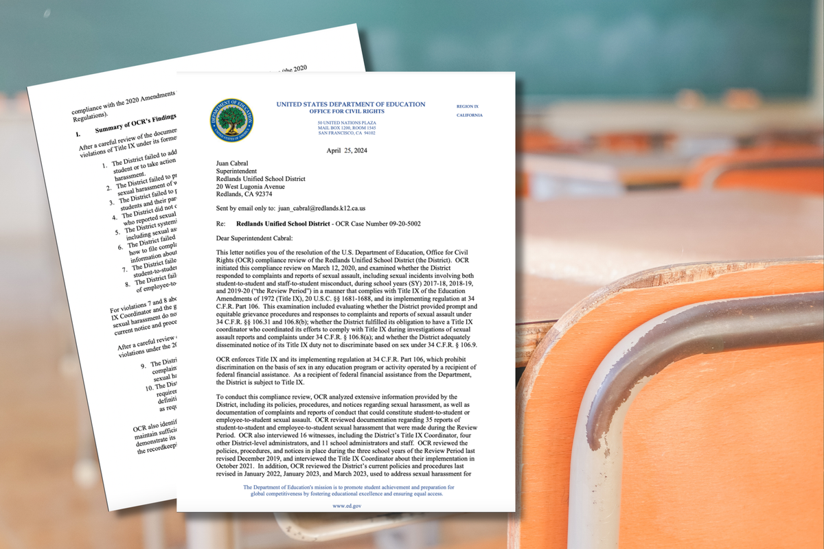 ⚖️ School District Responds to Civil Rights Resolution: Redlands Unified has entered into a resolution agreement with the Department of Education's Office for Civil Rights (OCR) to address concerns that the district inadequately responded to reports of sexual misconduct. The agreement was announced on April 25 following an investigation that revealed multiple violations of Title IX, during the review of three school years between 2017-18 to 2019-2020. Following news of the resolution, Superintendent Juan Cabral outlined the safety measures that have already been implemented in a letter to families and community members on May 2. Read more about the investigation and the district's response here.