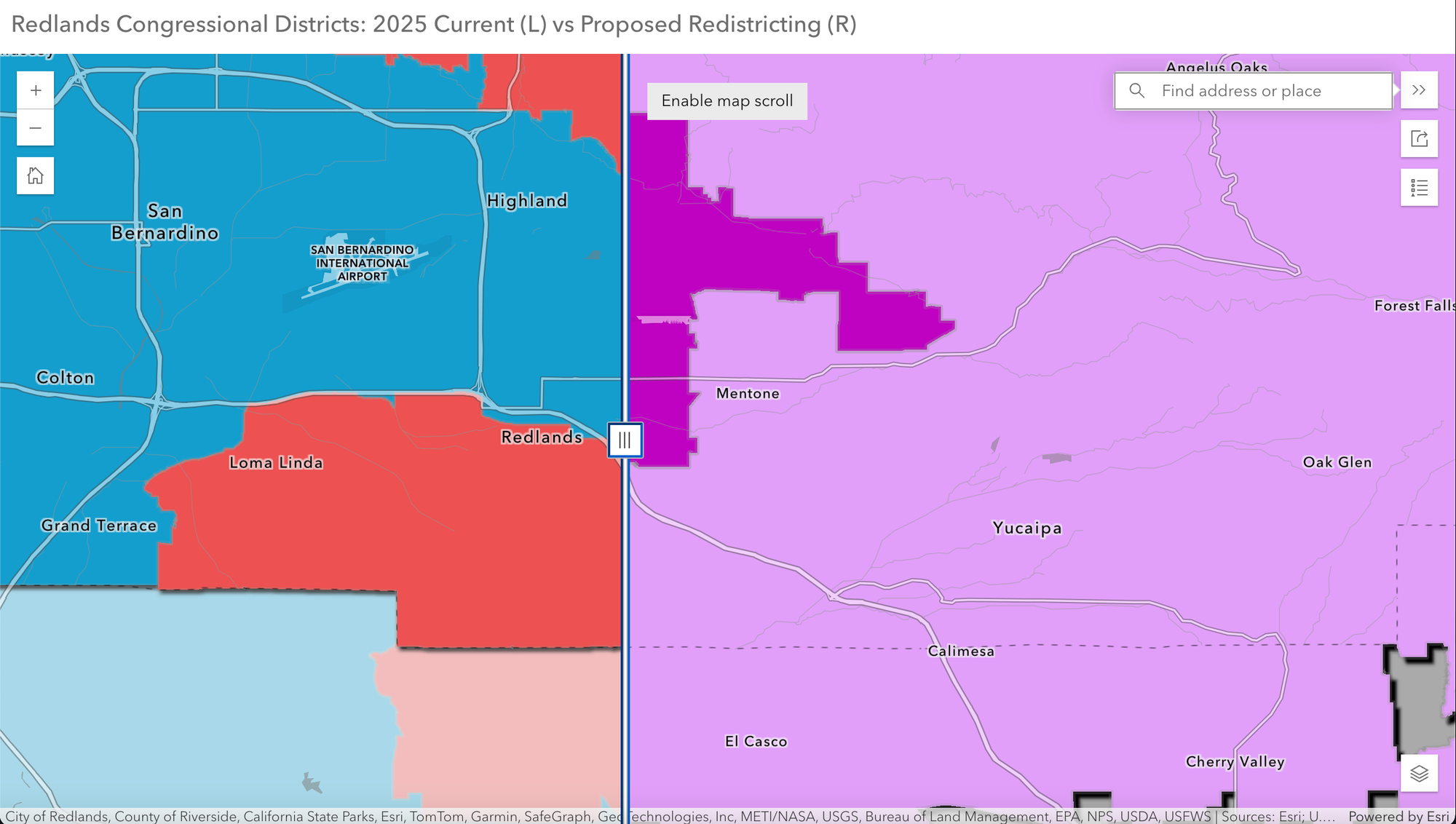 Redlands is currently divided between congressional districts 23 and 33, split roughly along the I-10 corridor.