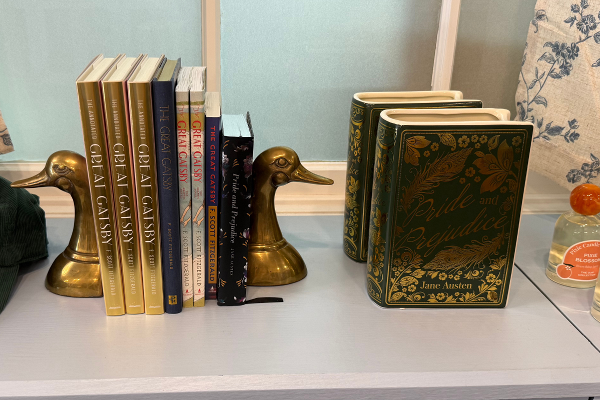 Feil’s favorite book, Pride and Prejudice, and Aguero’s, The Great Gatsby, have special displays in the store, including collectible editions. “There’s a beautiful green cover with gold edges that I’ve re-ordered four times since we opened,” Feil said.