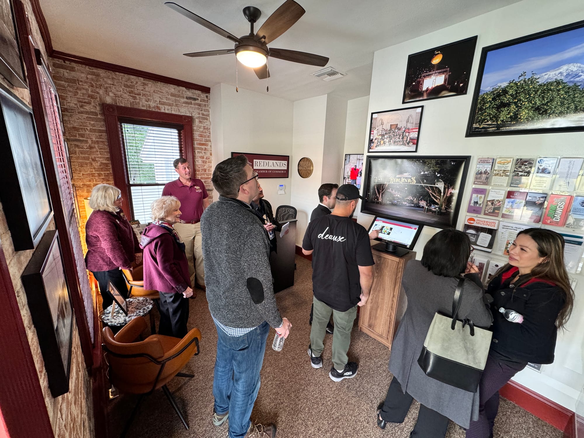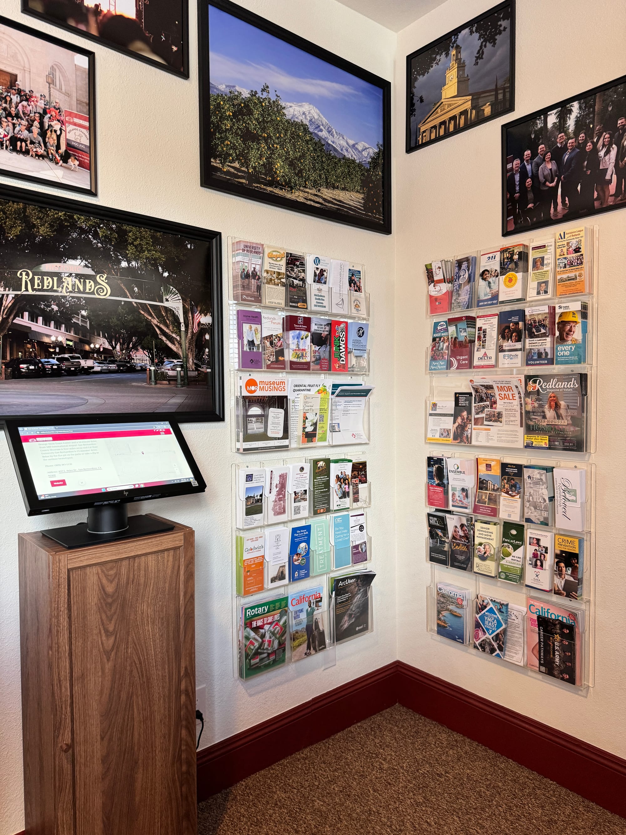 Among the highlights is a touchscreen kiosk that invites viewers to explore the Chamber's Visit Redlands catalog.