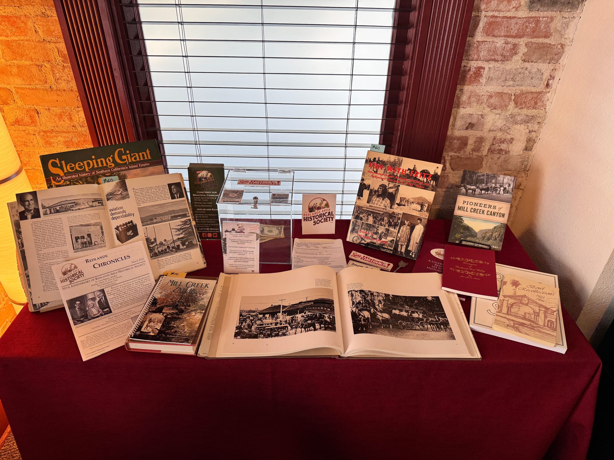 Local nonprofits can use the lobby as a physical location for their organizations. The Redlands Area Historical Society proved the concept during the grand opening. Members of the organization were available to help visitors using the kiosk and share more about their work that was on display.