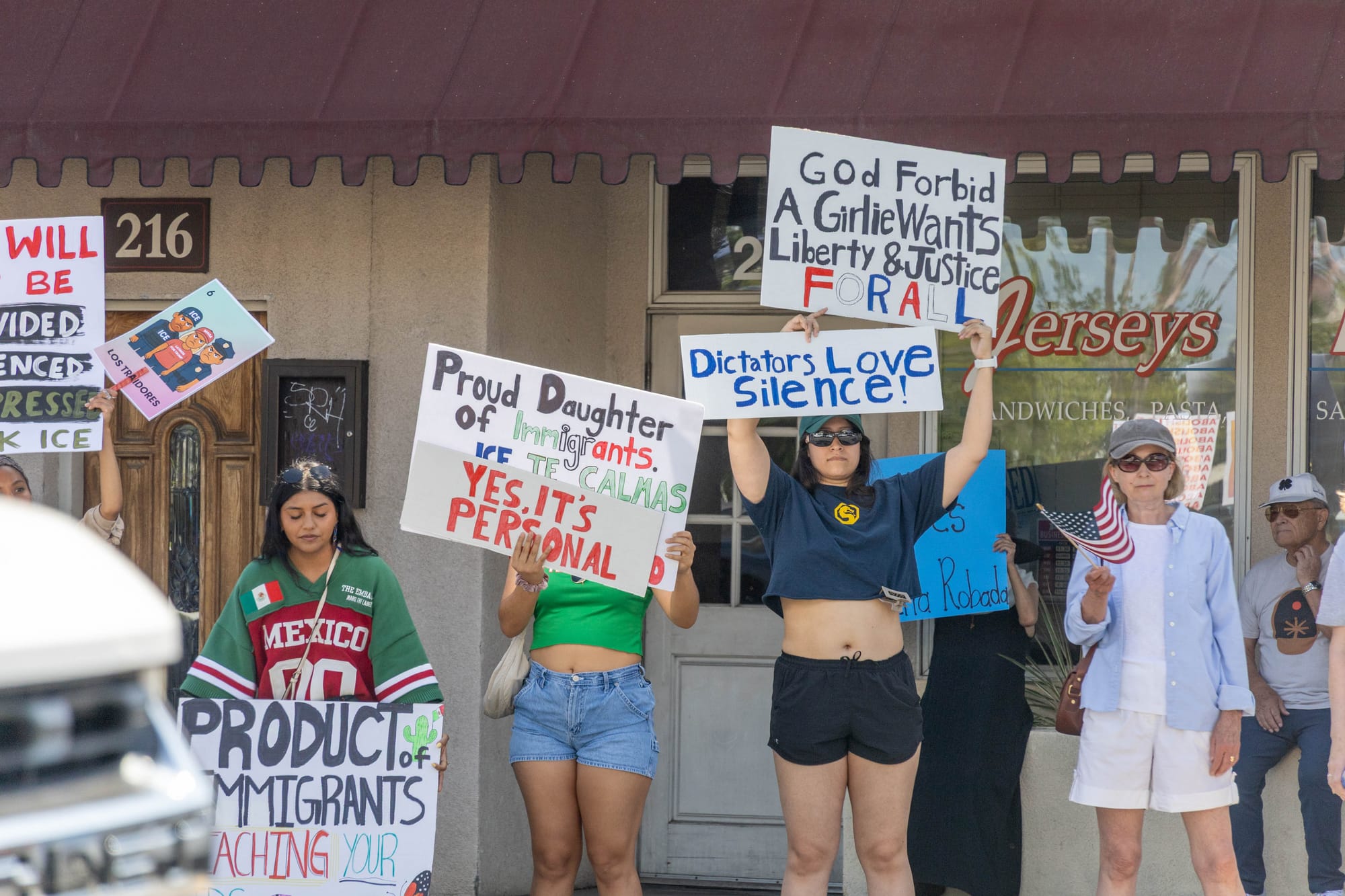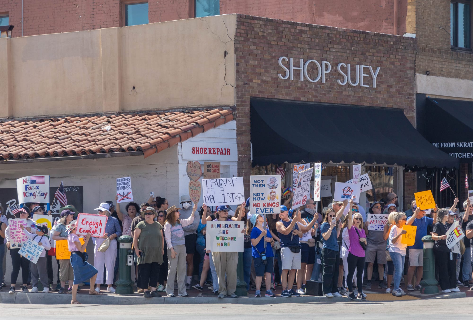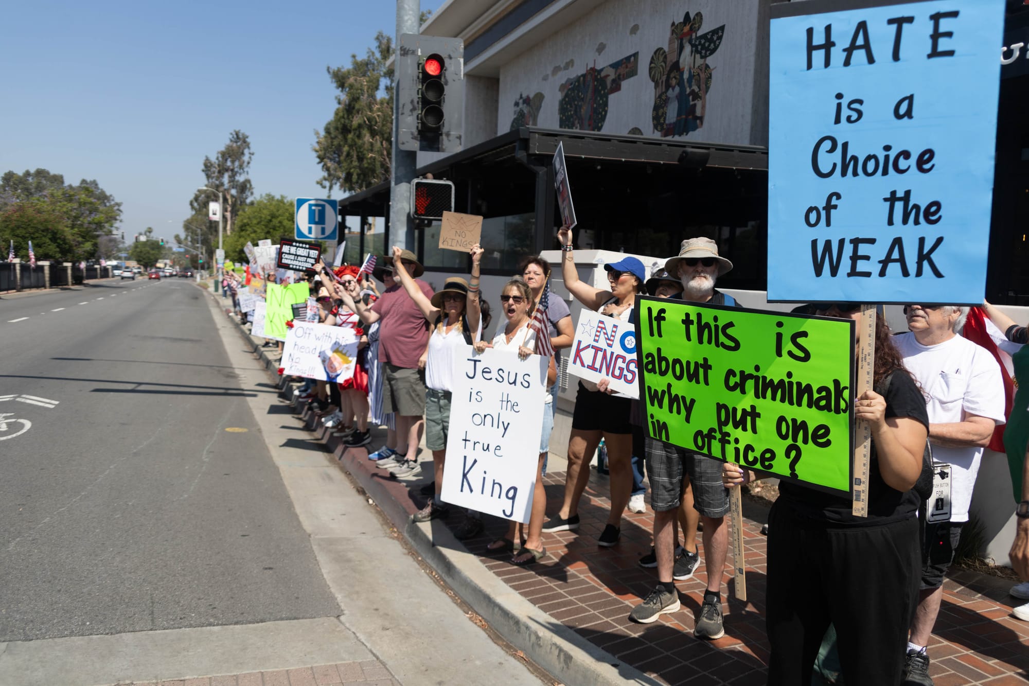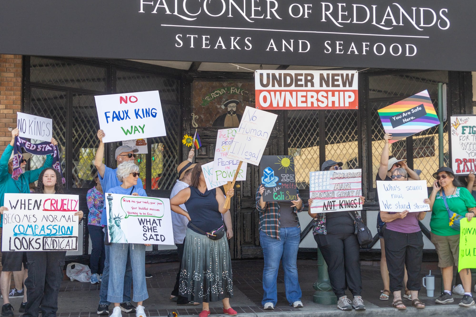 Redlands demonstrators echoed sentiments heard nationwide. Many held signs reading “No Thrones, No Crowns, No Kings,” and chanted slogans demanding accountability and transparency. Attendees expressed alarm over ongoing immigration raids, attacks on civil rights and what they view as the erosion of American institutions.