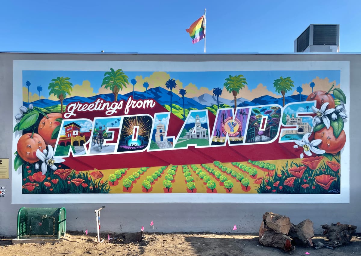 A once-overlooked wall in downtown Redlands has been transformed into a colorful tribute to the city’s most beloved landmarks, traditions and community spirit.