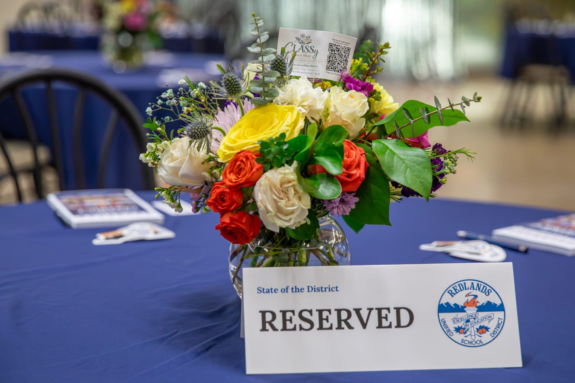 Floral centerpieces adorning each table were assembled by students in Jennifer Dillow’s special education adult transition program class at Citrus Valley High School.