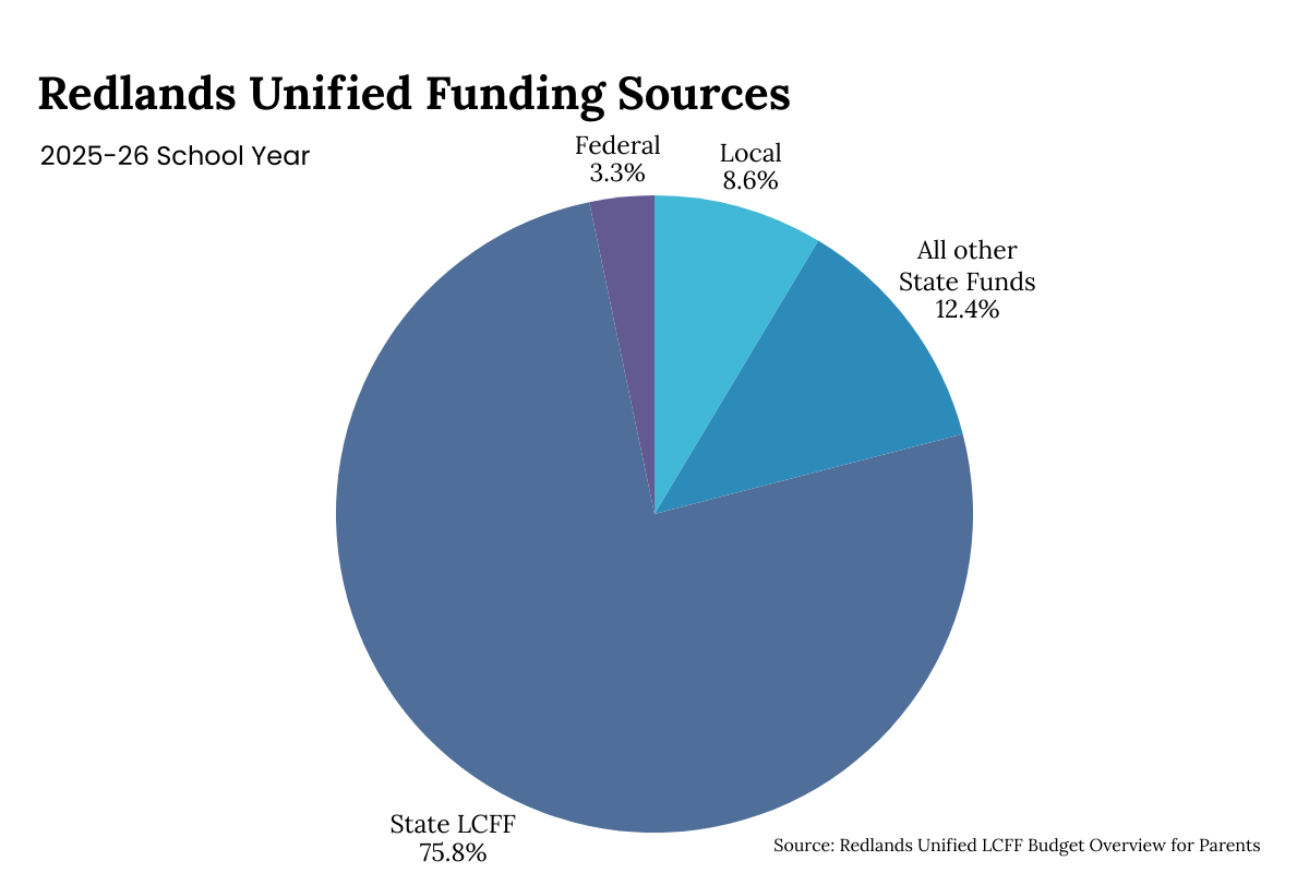 For the 2025–26 school year, Redlands Unified expects to receive about $337.8 million in revenue from state, federal and local sources.