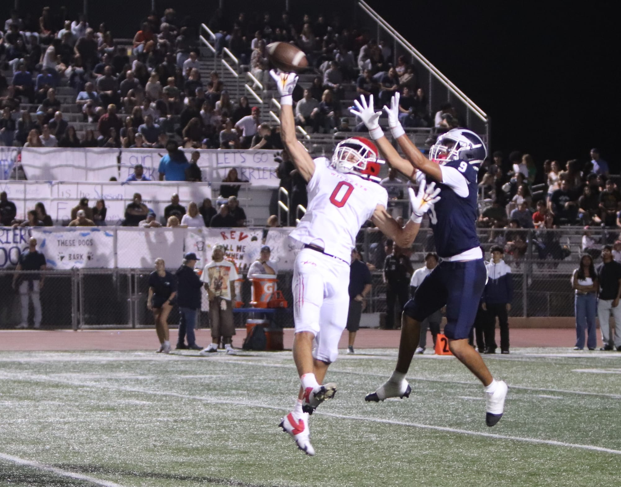 REV's Josiah Carter knocks away a pass intended for Redlands' Junior Sanchez. (Photo by John Murphy)
