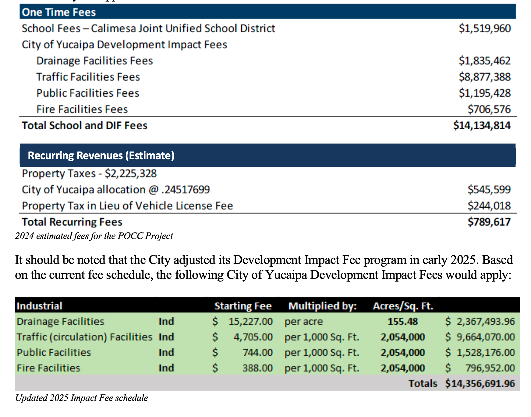 Economic impact: City staff estimate the project will generate more than $14 million in one-time development impact fees to fund infrastructure and public safety needs. Once operational, the center is expected to deliver recurring revenue streams for Yucaipa through property taxes, ongoing community facilities district assessments and other fees.